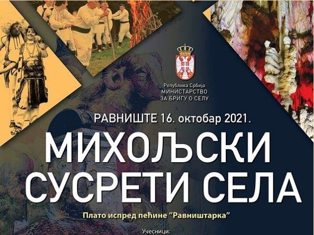 Манифестација “Михољски сусрети села” у општини Кучево, одржаће се у селу Равништу, 16. октобра 2021. године, на платоу изнад пећине “Равништарка”, у оквиру туристичког комплекса “Равништарка”.